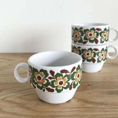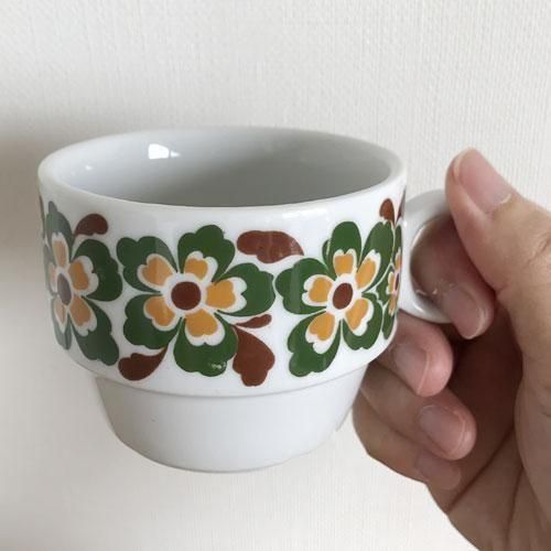 チェコスロヴァキア時代のヴィンテージ食器 マグカップ 緑と茶色の花柄