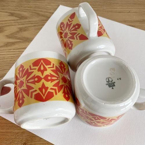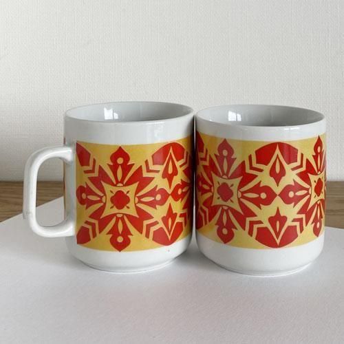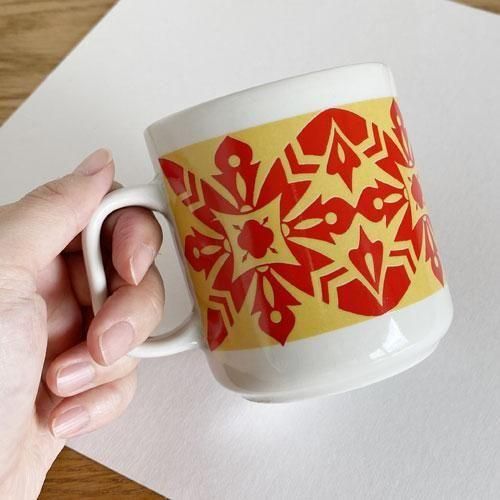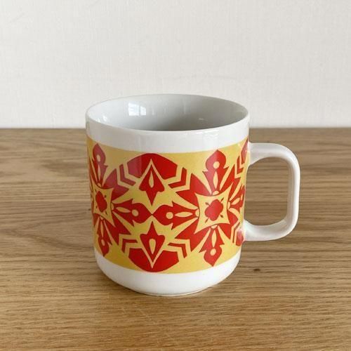 ポーランドのヴィンテージ食器 マグカップ オレンジと赤の切り絵模様