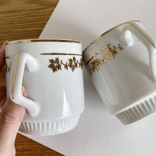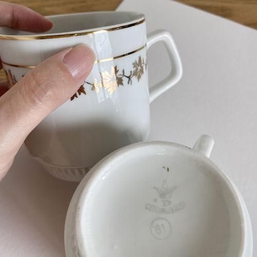 チェコスロヴァキア時代のヴィンテージ食器 マグカップ ゴールドの葉