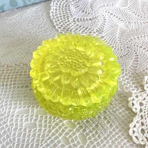 こちらの小物入れは、写真では分かりにくいのですが、フタには向日葵が、下部にはお花と葉がデザインされています。