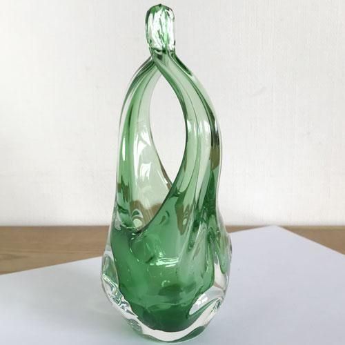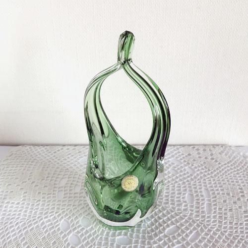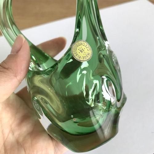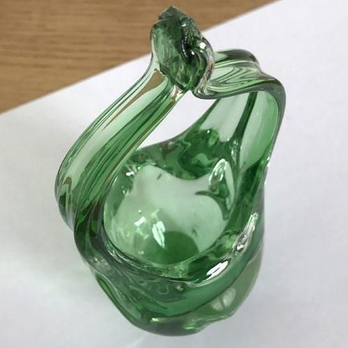 チェコスロヴァキア時代のガラスの器 緑のかご