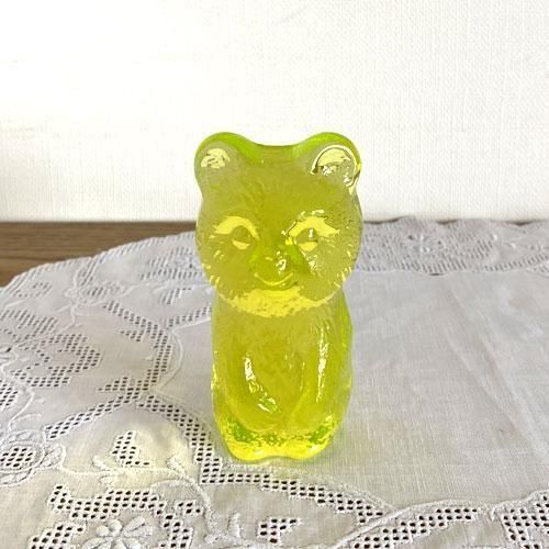 チェコ ボヘミアガラスの置物 ウランガラスのくま