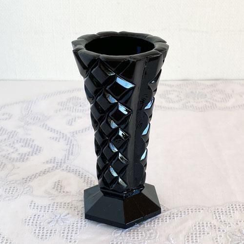 チェコスロヴァキア ボヘミアガラスの花瓶 10.5cm オニキスガラス