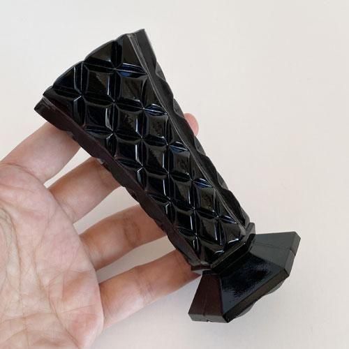 光にかざしても透け感は全くない、美しい黒ガラスです。