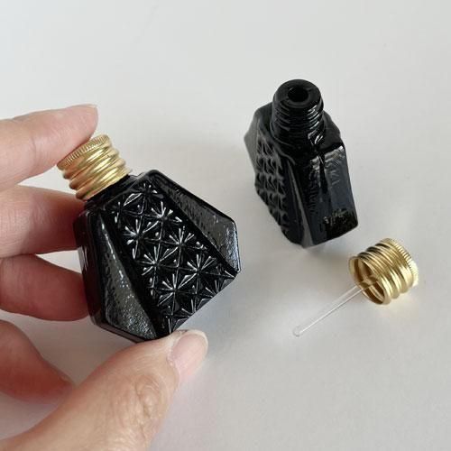 チェコ ボヘミアガラスの香水瓶 オニキスガラス 斜めカット