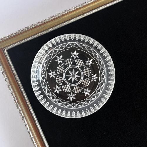 チェコスロヴァキア時代のボヘミアガラスの小皿 円形お花