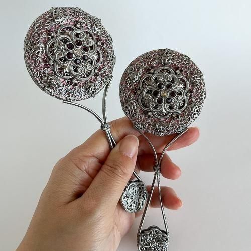 装飾は古くからヤブロネッツで作られているジュエリーと同じ手法で作られており、プレス機で形作られた複数の金属パーツを溶接し組み立て、ひとつひとつガラスストーンをはめ込んで作られています。