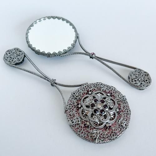 チェコのボヘミア地方で作られている装飾が施された小さな手鏡です。