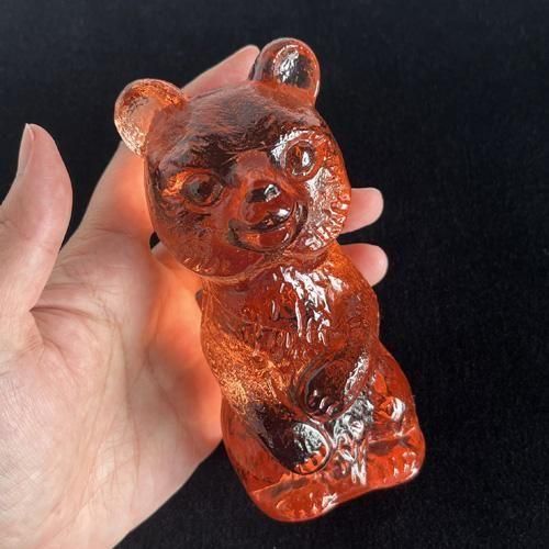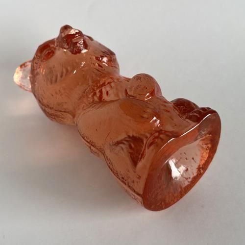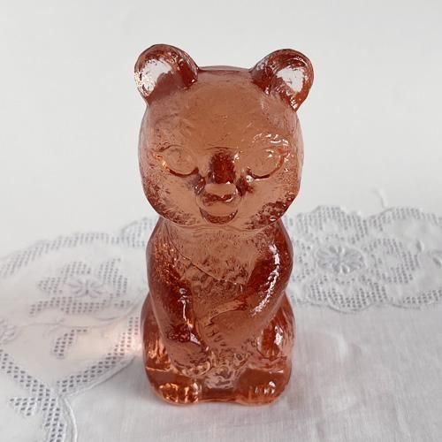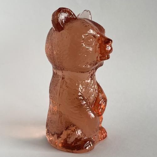 チェコ ボヘミアガラスの置物 立体のくま ピンク