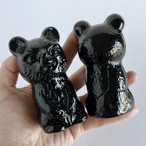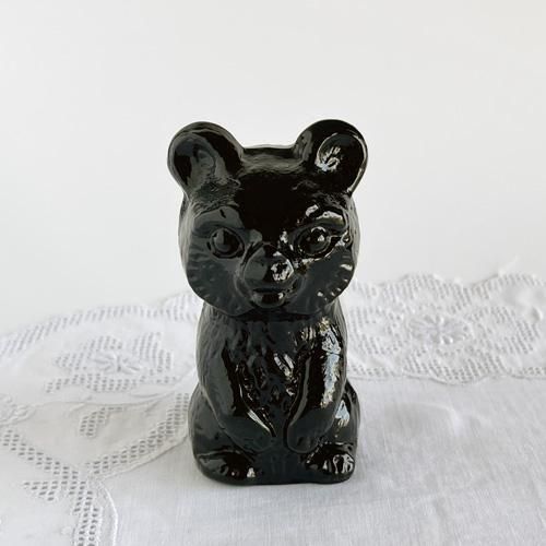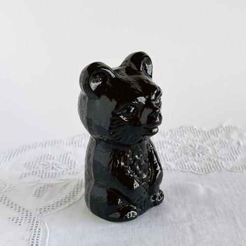 チェコ ボヘミアガラスの置物 こぐま 黒