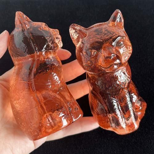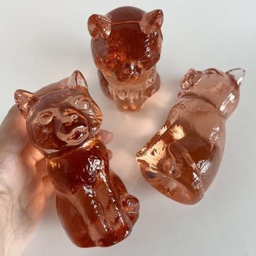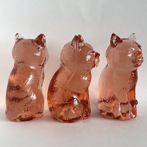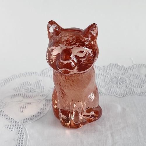 チェコ ボヘミアガラスの置物 ネコ ピンク