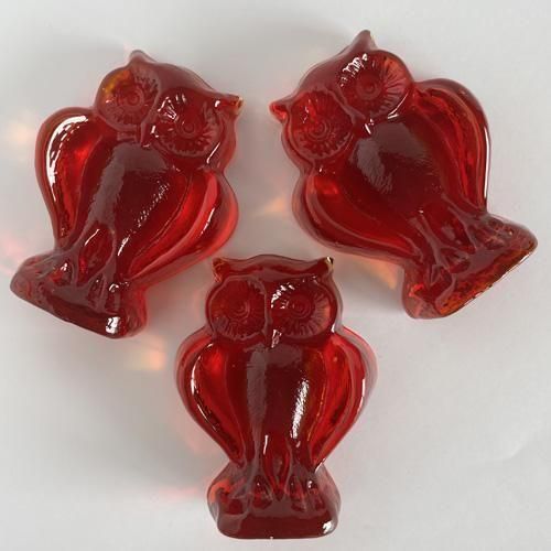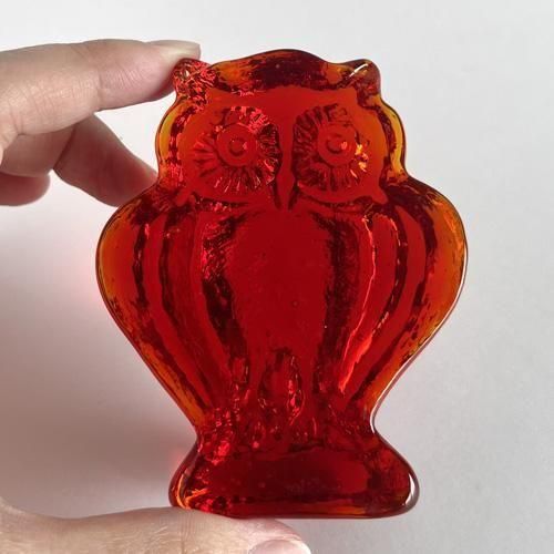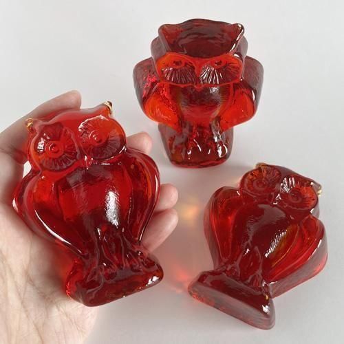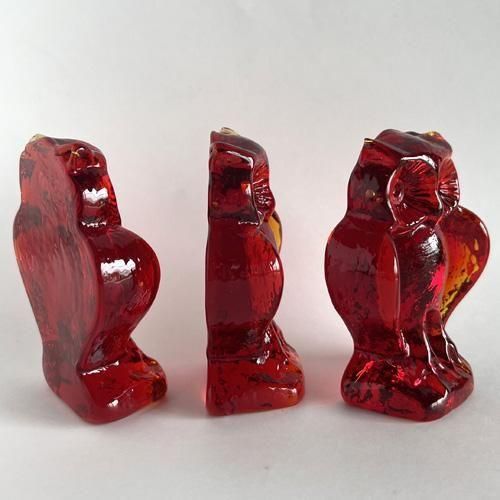 こちらは透明感のある赤色、背面は平らになっていますが、足の底部分に奥行きがありますので、同じように背面が平らになっているクマの置物に比べると、立てて飾っても安定感があります。