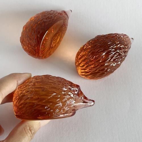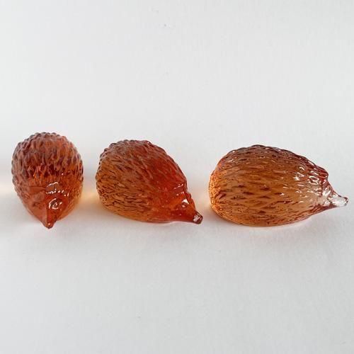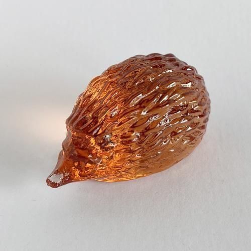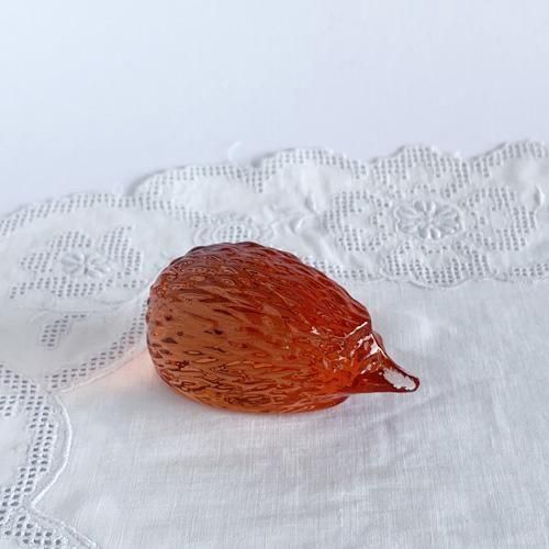チェコ ボヘミアガラスの置物 はりねずみ ピンクオレンジ