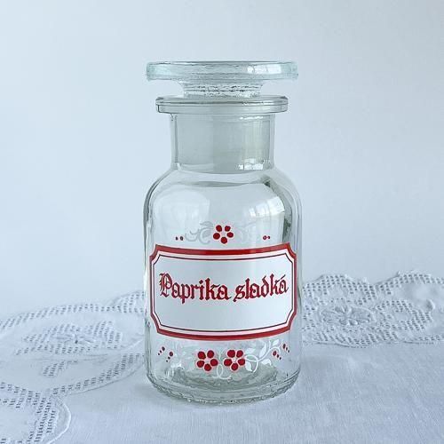 チェコのガラス製ヴィンテージスパイスボトル 小 パプリカスラドカー