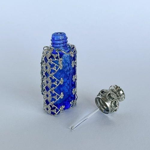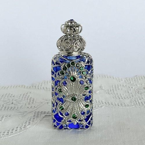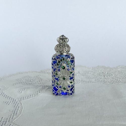 チェコ 装飾付き香水瓶 304 紺色×青と緑のレース模様