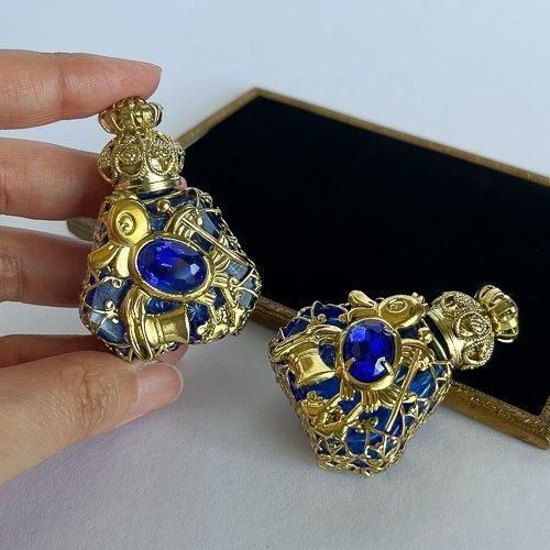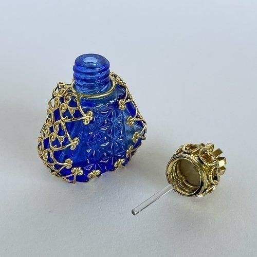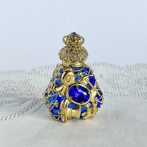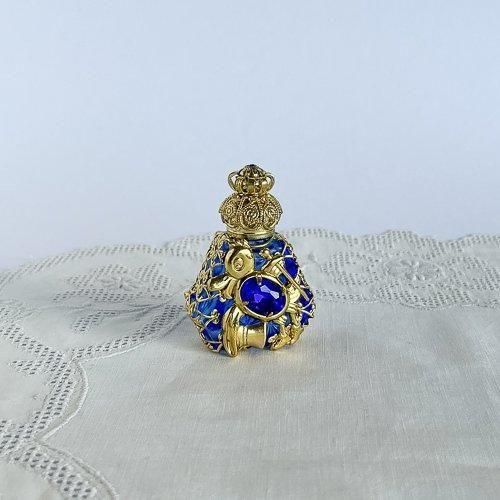 チェコ 装飾付き香水瓶 337 紺色×シルクハット小鳥