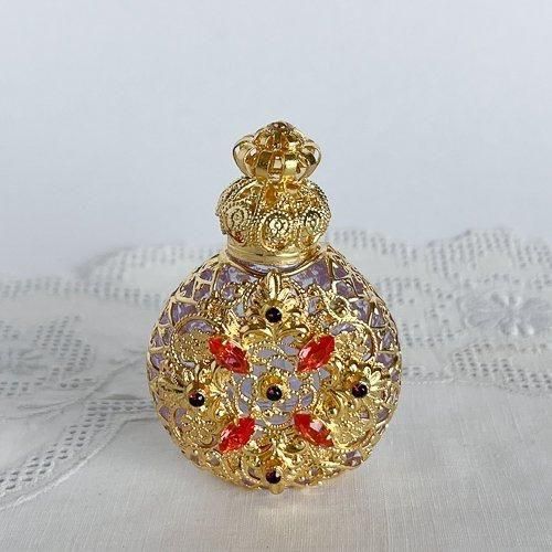 チェコ 装飾付き香水瓶 392 アレキサンドライトガラス 4つのピンクナベット