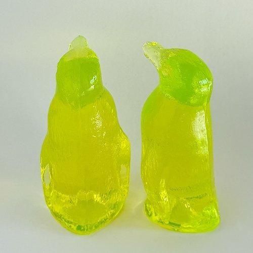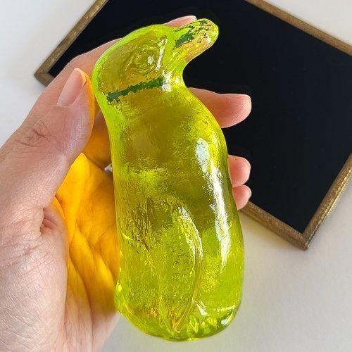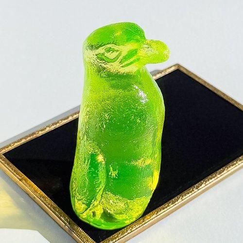 チェコ製 ボヘミアガラスの置物 ウランガラスのペンギン