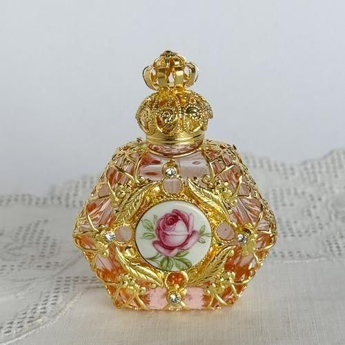 チェコ 装飾付き香水瓶 409 ピンク×お花カボション