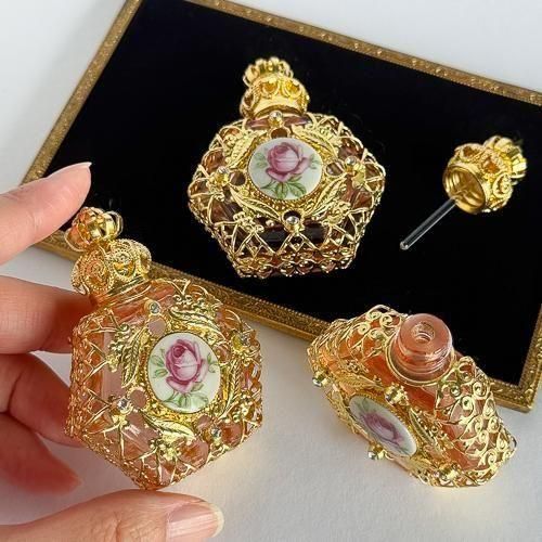 香水瓶自体も手作りですが、装飾ももちろん全ての工程が手作業です。