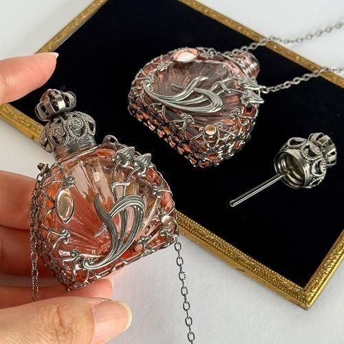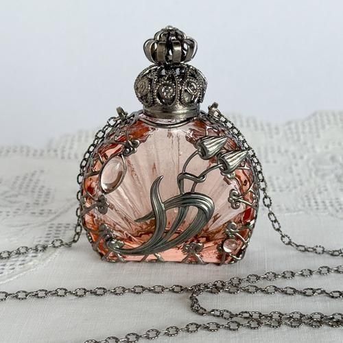 チェコ 装飾付き香水瓶 424 ピンク×植物