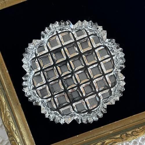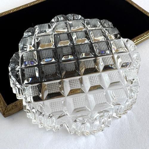 溶かしたガラスを型に流し込み圧をかけて成型されたプレスガラスですが、ギザギザの多いデザインで、チェコのクリスタルガラスならではのキラキラがとても美しいです。