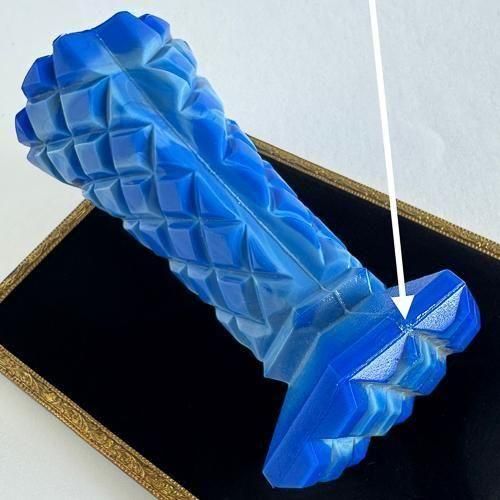 型に溶かしたガラスを流し込み圧をかけて成型するプレスガラスという手法で作られた花瓶です。