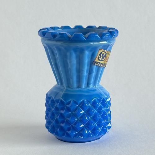 チェコスロヴァキア ボヘミアガラスの花瓶 小 ラピスラズリガラス