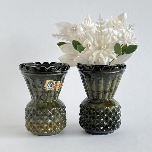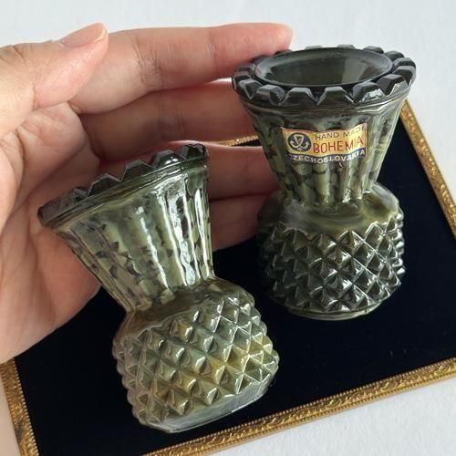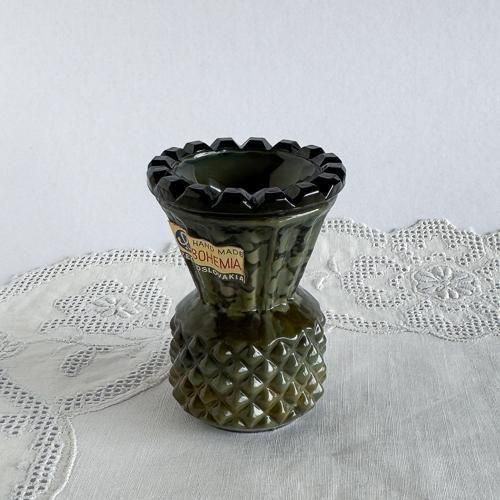 チェコスロヴァキア ボヘミアガラスの花瓶 小 グレー