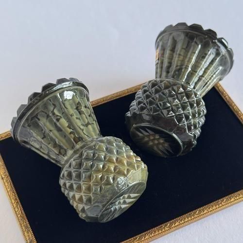 プレスガラスは型があれば同じ手法で現在も製造することが可能なため、製造年をはっきりと特定することは難しいのですが、こちらはおそらく1960年代に製造されたものだと思われます。