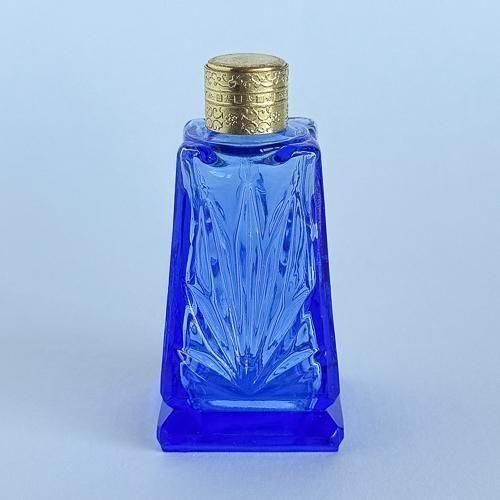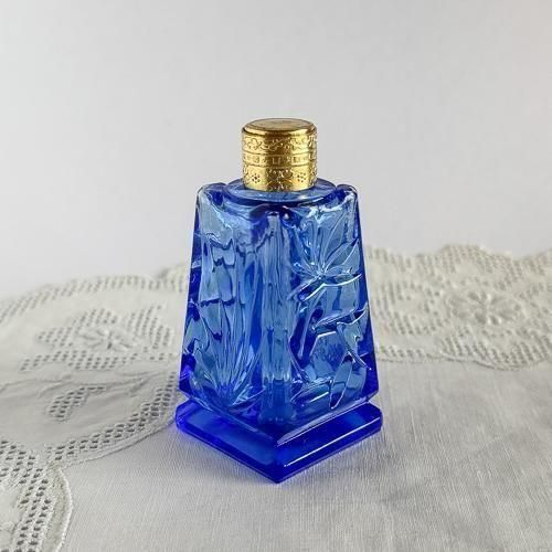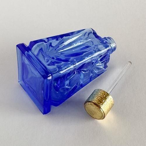 チェコガラスの香水瓶 431 大きめ 四角 青