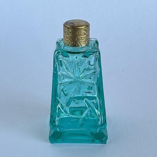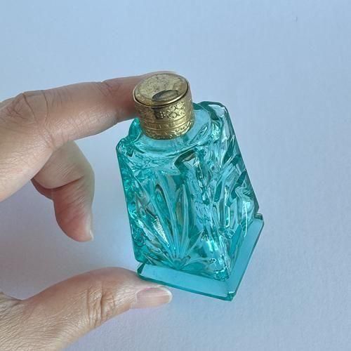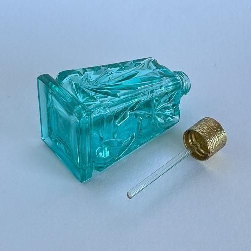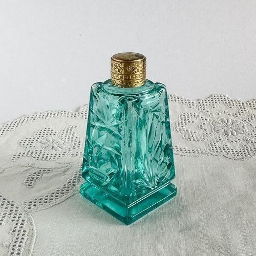 チェコガラスの香水瓶 432 大きめ 四角 青緑