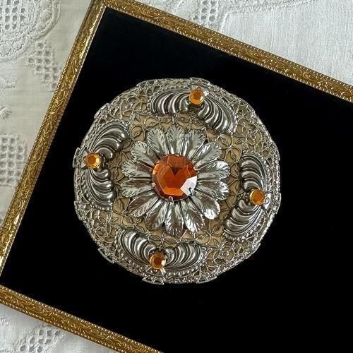 チェコ 装飾付き手鏡 49 直径5.5cm トパーズガラス