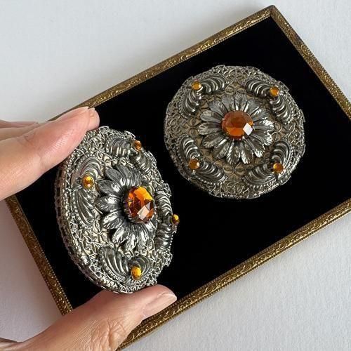 またヴィンテージのガラスストーンを使用していることもあるため、縁の処理が粗かったり、裏のフォイルが多少剥離していたり、僅かに欠けている場合もございます。