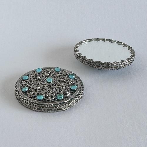 チェコ 装飾付き手鏡 50 直径4.3cm 水色