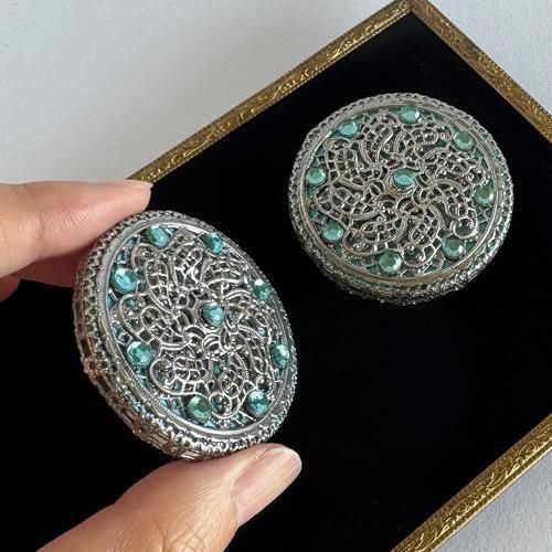 またヴィンテージのガラスストーンを使用していることもあるため、縁の処理が粗かったり、裏のフォイルが多少剥離していたり、僅かに欠けている場合もございます。