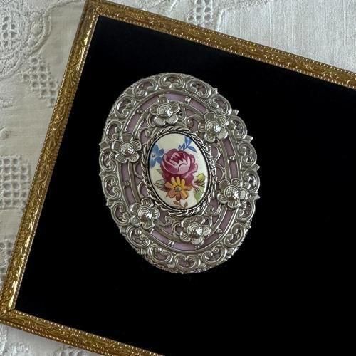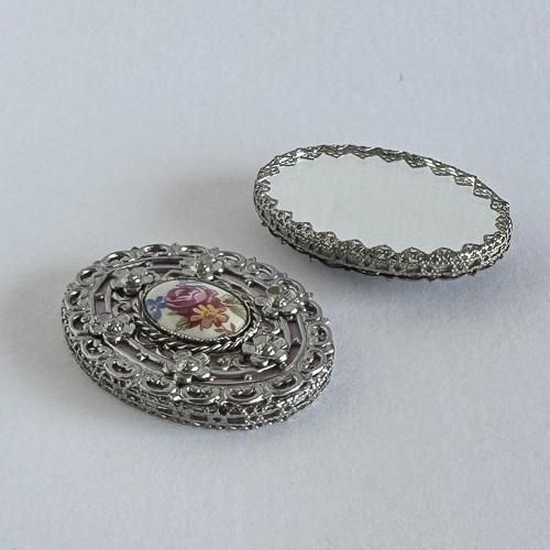 チェコ 装飾付き手鏡 52 楕円5.2×4cm 銀×ピンク紫色
