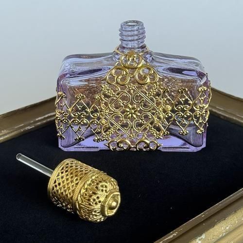 チェコガラスの香水瓶 435 大 アレキサンドライトガラス 金
