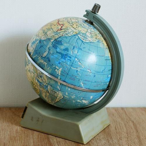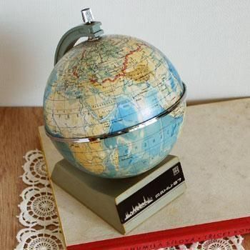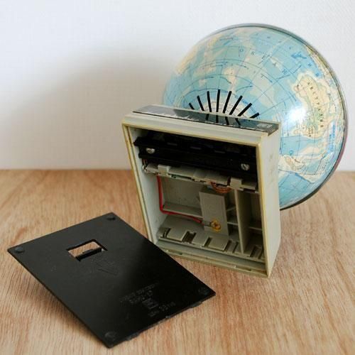 置物だと思っていたのですが、底がはずせて電池が入れられる仕様になっています。調べたところ、なんとラジオとのこと!てっぺんのツマミを回したり、地球儀を回したりして、チャンネルを調整できるようです。
