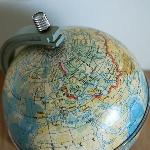 土台の部分に「TALLINN」とかかれており、地球儀本体はキリル文字で書かれています。エストニア製のようです。
