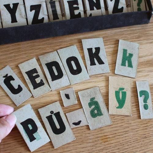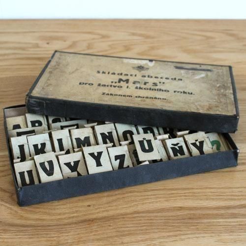 古びた箱が非常に美しいこちらは、子供がチェコ語を勉強するためのアルファベットおもちゃです。