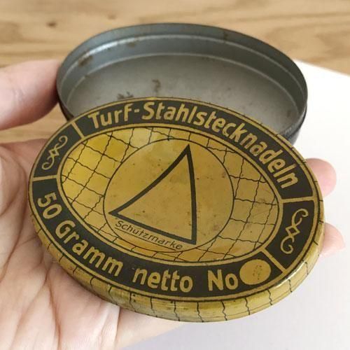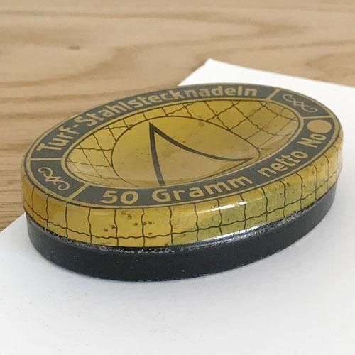 元々はスチールピンが50g入っていたもので、おそらく1950年代のものです。