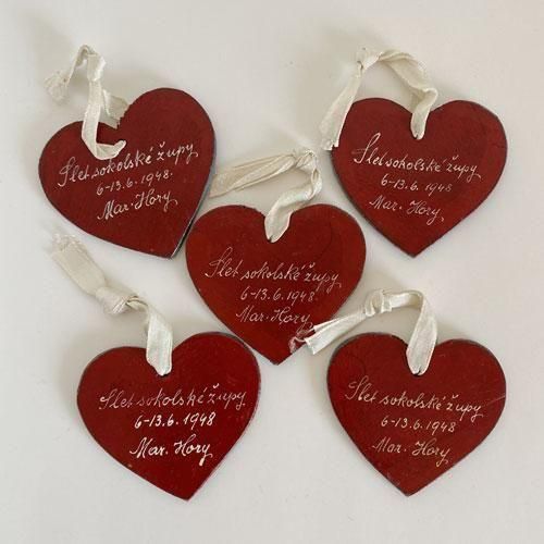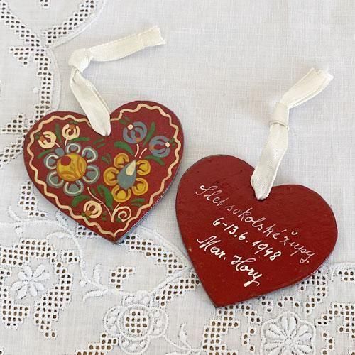 チェコスロヴァキア 1948年のハンドペイントの木製オーナメント ふたつの花