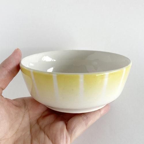 チェコで買い付けたヴィンテージの陶器ボウル 直径11cm 黄色ライン