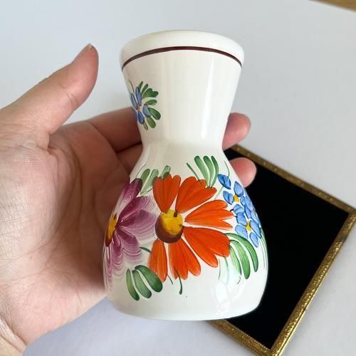 チェコのホドスコ地方の伝統的な民芸品陶器 10.5cmの花瓶 上部青い花