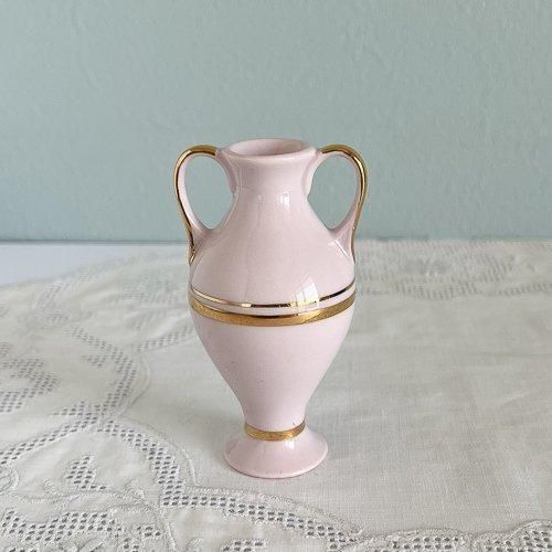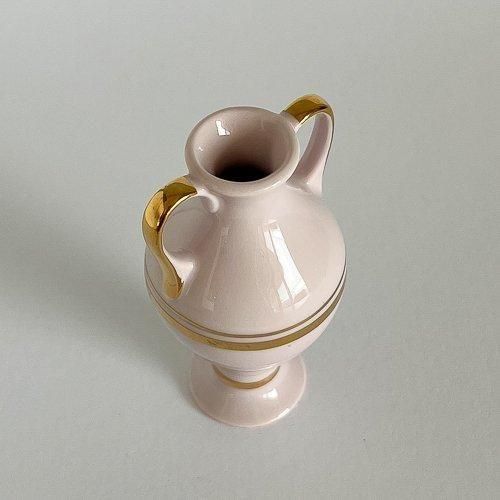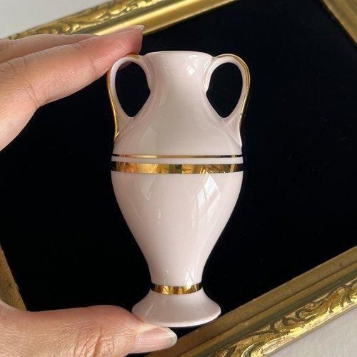 高さ8cmほどの小さな花瓶ですが、優美なデザインが美しく、金彩の部分はハンドペイントで絵付けされています。