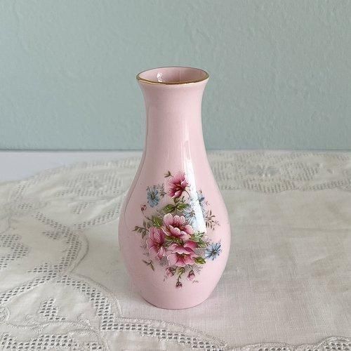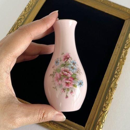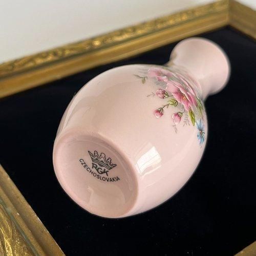 チェコスロヴァキア ピンクポーセリンの花瓶 ピンクと水色の花