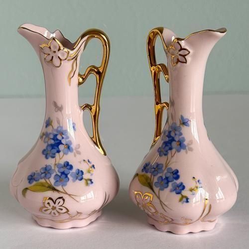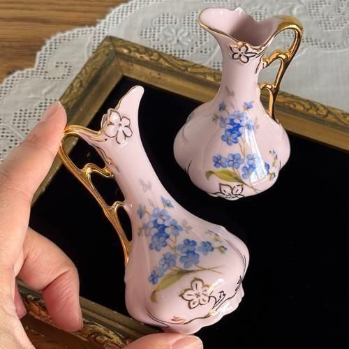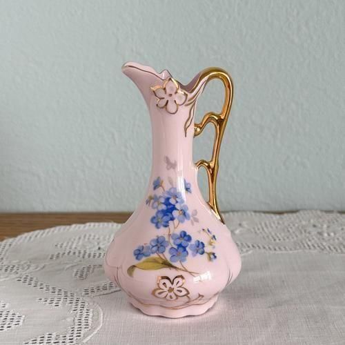 チェコスロヴァキア ホドフのピンクポーセリンの花瓶 勿忘草