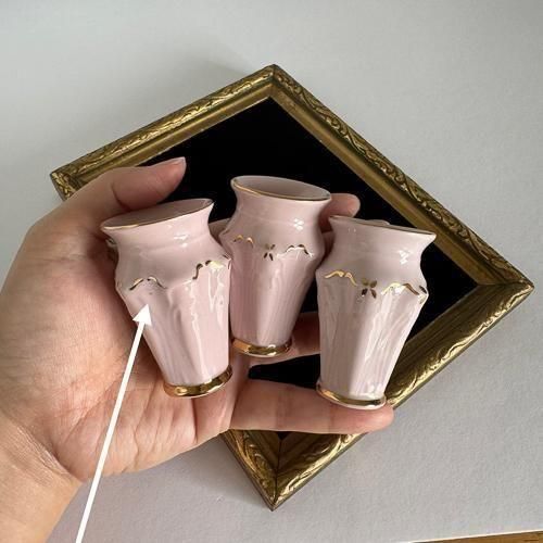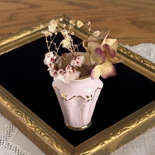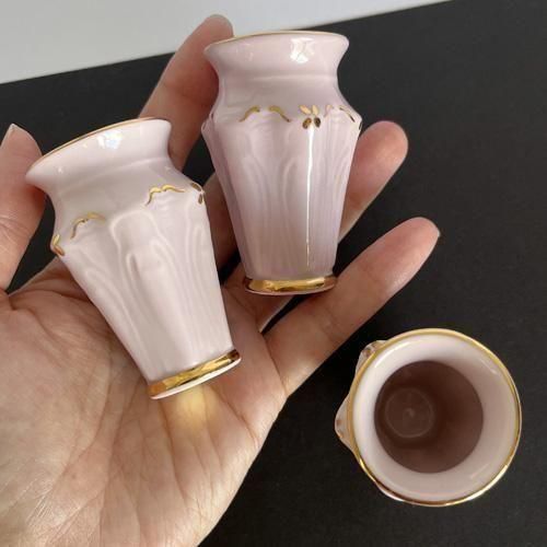 高さ6cmほどの小さな花瓶ですが、優美なデザインが美しく、金彩の部分はハンドペイントで絵付けされています。