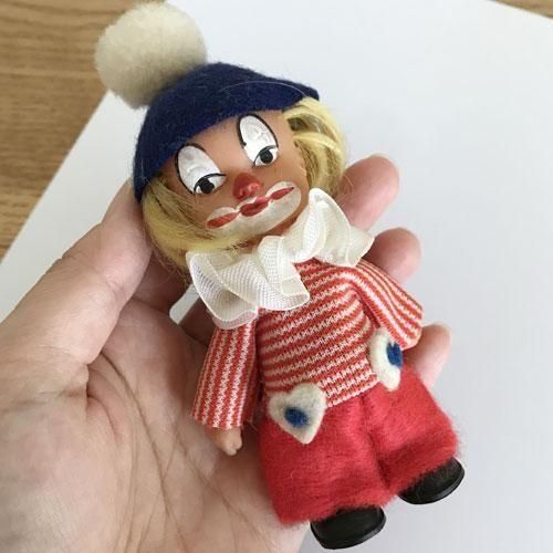 東ドイツ時代ARI社製のお人形 赤ボーダー赤ズボンのピエロ